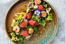 195 г • креветки, красное киноа, микс салатов, пряный грейпфрут, чеснок, оливковое масло