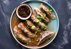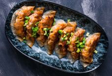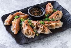 200/30 г • японские пельмени с курицей, зелёный лук, кунжут, соус гёдза