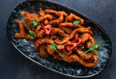 135 г • кальмар темпура, чеснок, укроп, устричный соус, чили-масло, перец чили