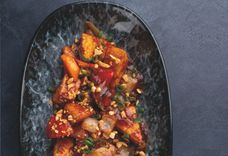 230 г • тофу, лук микс, сладкий перец, чесночный соус, арахис, зеленый лук