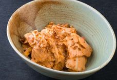 100 г • пекинская капуста, сгущенное молоко, сок лайма, соусы табаджан и кимчи, жареный лук