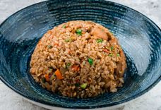 385 г • рис, курица, яйцо, сливочное масло, морковь, лук, соевый соус, кунжут, зеленый лук