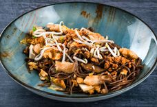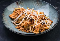 420 г • морковь, грибы шиитаке, яйцо, капуста микс, лук-порей, заправка для лапши, соус пад-тай, соус шрирача, арахис, курица, ростки сои