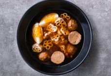 230 г • бульон рамэн, макароны, морковь, мясные фрикадельки, яйцо